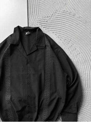 HASIR SERIT OVERSIZE GÖMLEK SİYAH