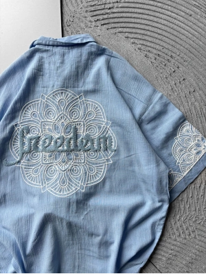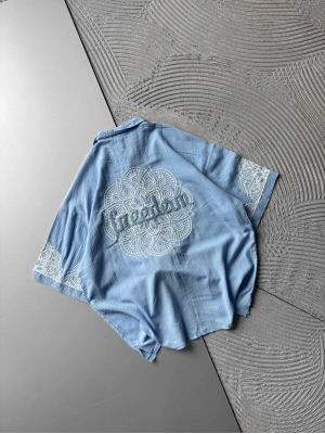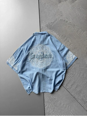 FUL İŞELEME FREEDOM OVERSIZE GÖMLEK MAVİ