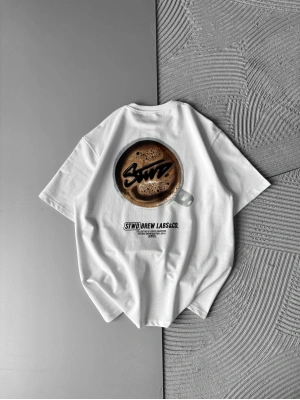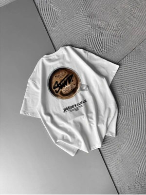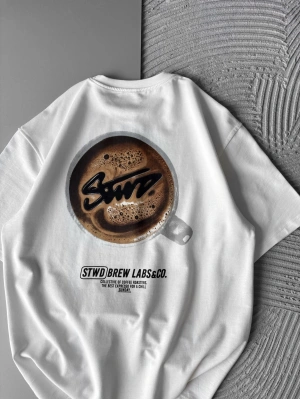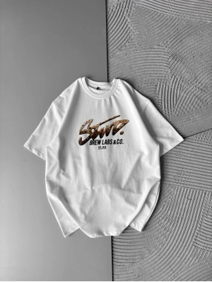 BREW LABS KAHVE BASKI OVERSİZE TSHİRT BEYAZ