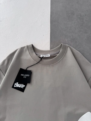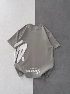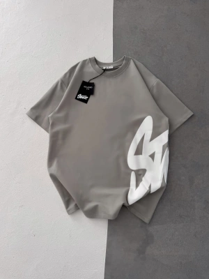 STW BEL BASKI BISIKLET YAKA OVERSIZE TSHIRT GRİ
