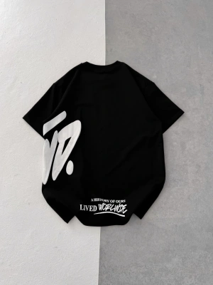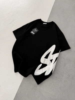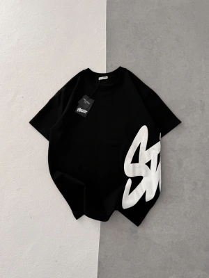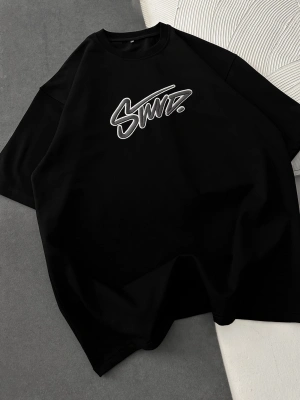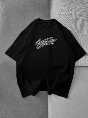 STW BEL BASKI BISIKLET YAKA OVERSIZE TSHIRT SİYAH