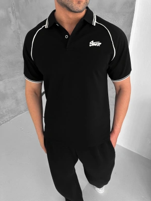 STW POLO YAKA BIYELI CP OVERSIZE TSHIRT SİYAH