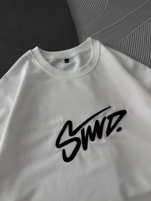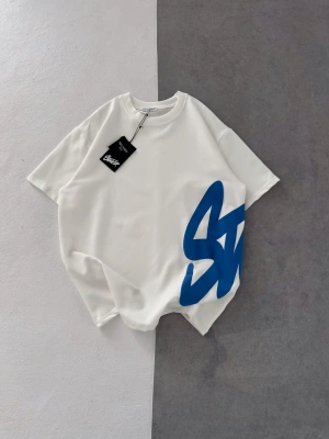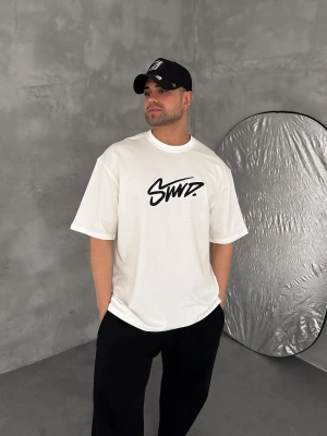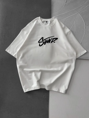 STW BEL BASKI BISIKLET YAKA OVERSIZE TSHIRT BEYAZ