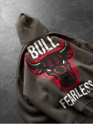 KAPÜŞON BULLS BASKI OVERSİZE 3 İPLİK SWEAT ANTRASİT