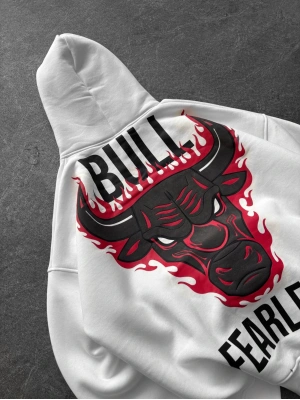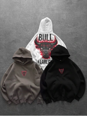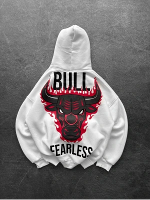 KAPÜŞON BULLS BASKI OVERSİZE 3 İPLİK SWEAT BEYAZ