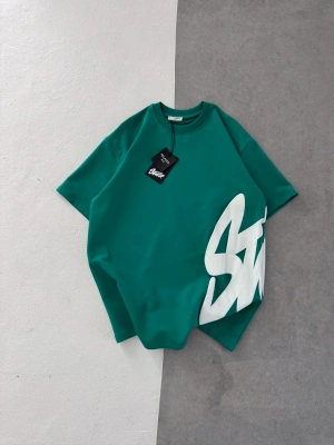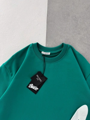 STW BEL BASKI BISIKLET YAKA OVERSIZE TSHIRT YEŞİL