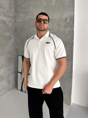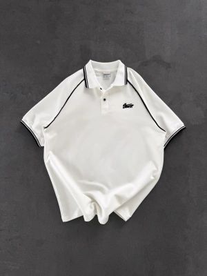STW POLO YAKA BIYELI CP OVERSIZE TSHIRT BEYAZ