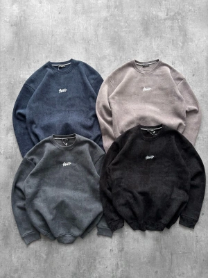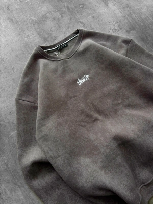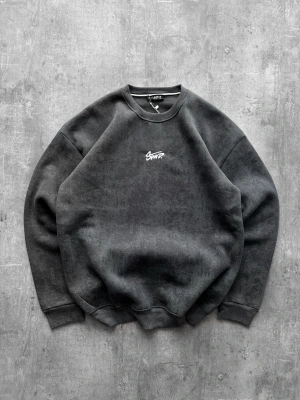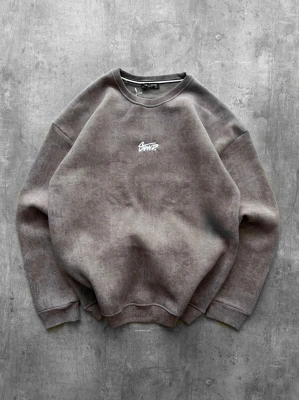 NAKIŞLI 3 İPLİK PAMUKLU KUMAŞ OVERSİZE STW SWEAT GRİ