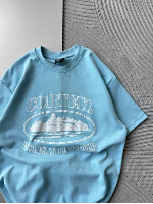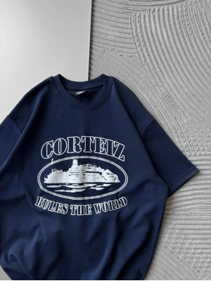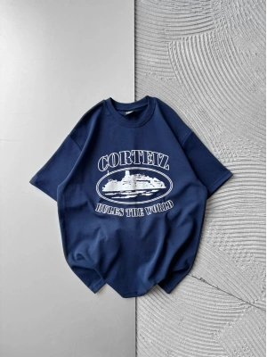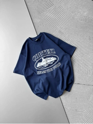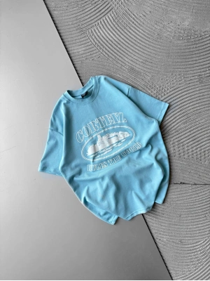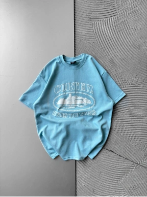 CORT ÖN BASKI OVERSİZE TİŞÖRT MAVİ