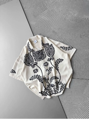 ÇİÇEK MOTİF VİNTAGE OVERSİZE GÖMLEK