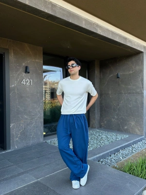 YAN KUMAŞ ÖZEL TASARIM EŞOFMAN MAVİ