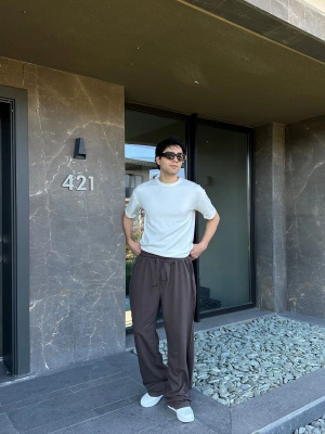 YAN KUMAŞ ÖZEL TASARIM EŞOFMAN KAHVE