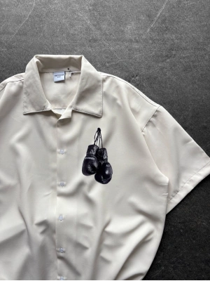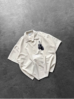 KABARTMA BASKI VİNTAGE OVERSİZE GÖMLEK KREM