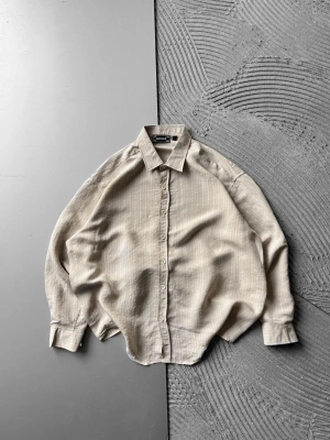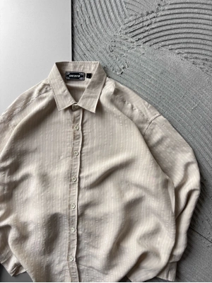 ÇİZGİLİ MODAL KUMAŞ OVERSİZE GÖMLEK KREM