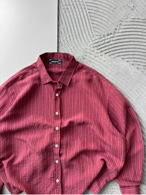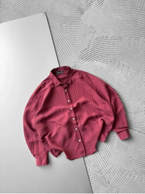 ÇİZGİLİ MODAL KUMAŞ OVERSİZE GÖMLEK KIRMIZI