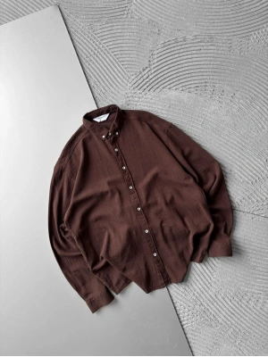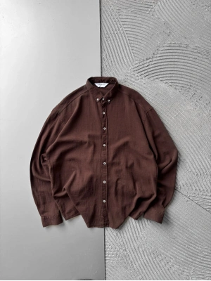 KETEN KUMAŞ GİGİ OVERSİZE GÖMLEK KAHVE