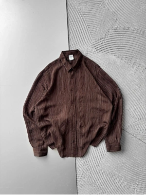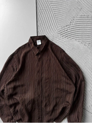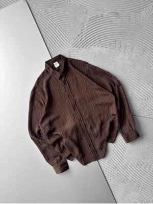 İNCE ÇİZGİLİ MODAL MARRA OVERSİZE GÖMLEK KAHVE