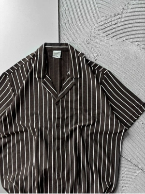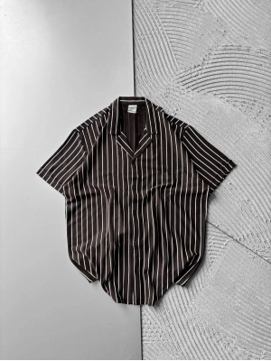 ÇİZGİLİ, PAMUKLU MARRA KISA KOLLU OVERSİZE GÖMLEK KAHVE