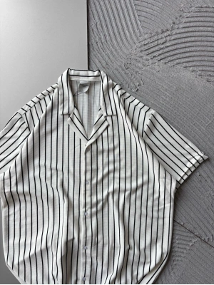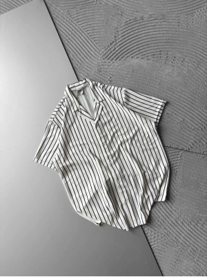 ÇİZGİLİ, PAMUKLU MARRA KISA KOLLU OVERSİZE GÖMLEK BEYAZ