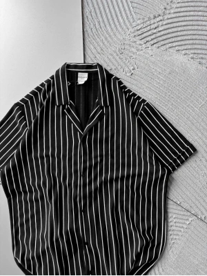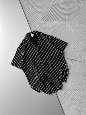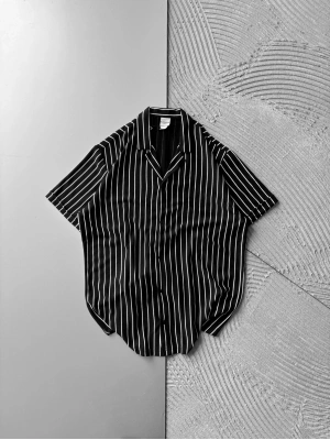 ÇİZGİLİ, PAMUKLU MARRA KISA KOLLU OVERSİZE GÖMLEK SİYAH