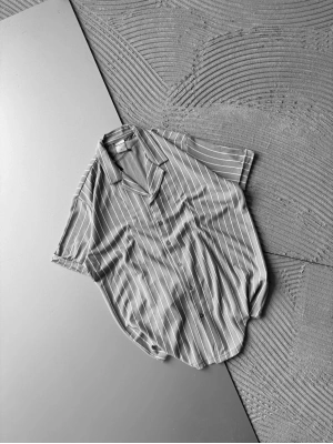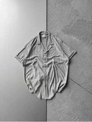 ÇİZGİLİ, PAMUKLU MARRA KISA KOLLU OVERSİZE GÖMLEK GRİ