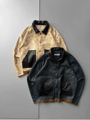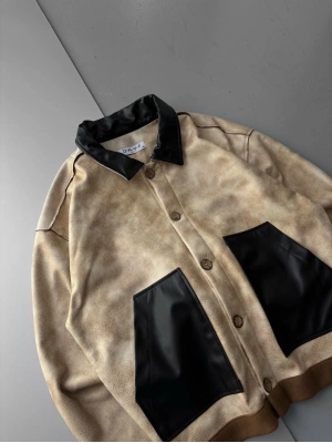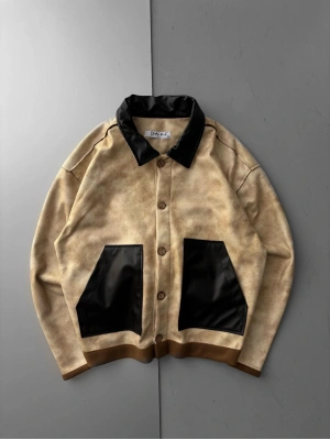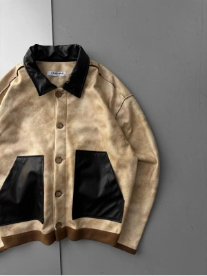 A KALİTE DERİ DETAYLI YIKAMALI CEKET KREM