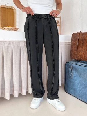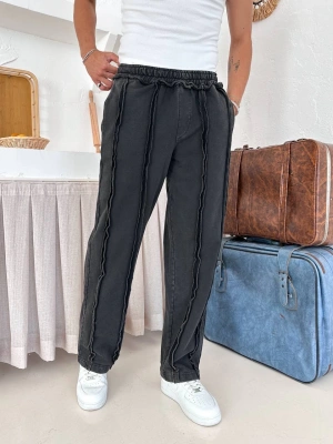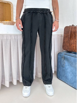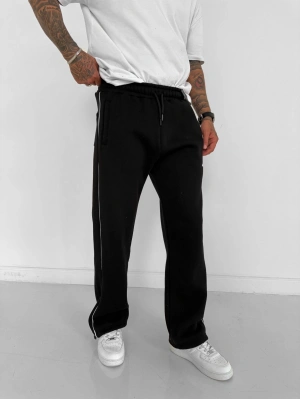 STW YANDAN BİYELİ PAÇA LASTİK 3 İPLİK PAMUKLU KUMAŞ EŞOFMAN ALTI SİYAH