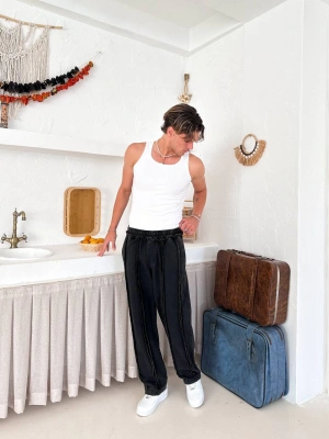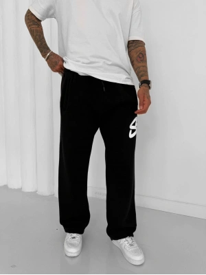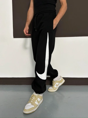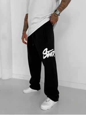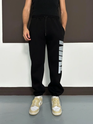 STW YAN BÜYÜK BASKI PAÇA LASTİK EŞOFMAN ALTI SİYAH