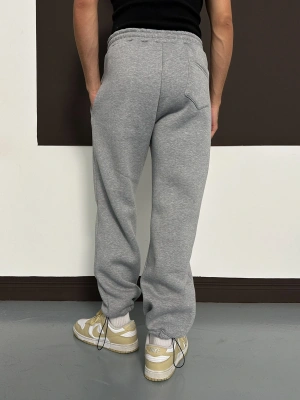 NK YANDAN BİYELİ PAÇA LASTİK 3 İPLİK PAMUKLU KUMAŞ EŞOFMAN ALTI GRİ