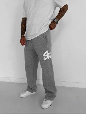 STW YAN BÜYÜK BASKI PAÇA LASTİK EŞOFMAN ALTI GRİ
