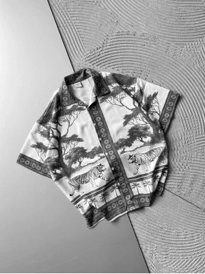ASLAN DESENLİ OVERSİZE GÖMLEK