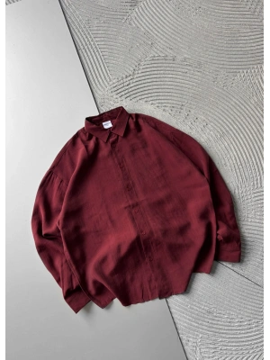 POLO YAKA MODAL KUMAŞ OVERSIZE GÖMLEK BORDO