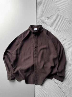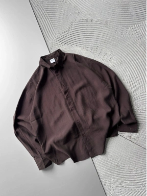 POLO YAKA MODAL KUMAŞ OVERSIZE GÖMLEK KAHVE