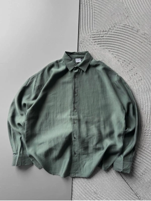 POLO YAKA MODAL KUMAŞ OVERSIZE GÖMLEK YEŞİL