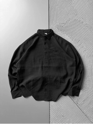POLO YAKA MODAL KUMAŞ OVERSIZE GÖMLEK SİYAH