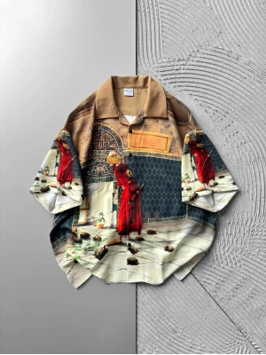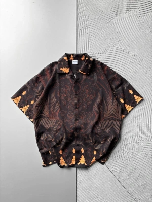 ETNIK DESEN OVERSIZE GÖMLEK KAHVE