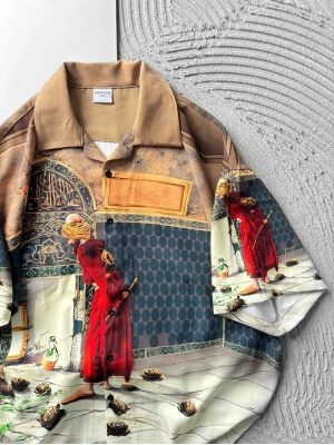 ETNIK DESEN OVERSIZE GÖMLEK GRİ