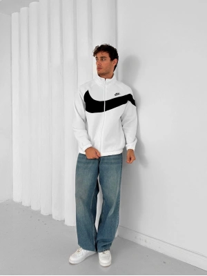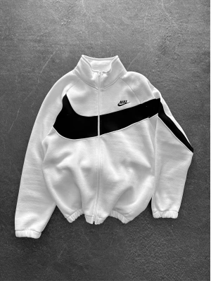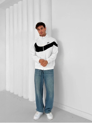 3 İPLİK PAMUKLU KUMAŞ ÇİFT NAKIŞ NK OVERSİZE HIRKA BEYAZ