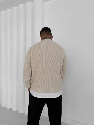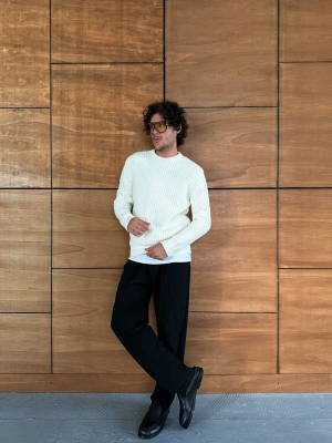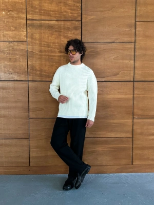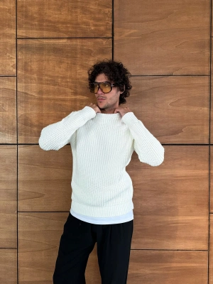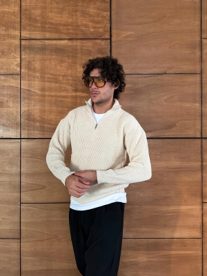 ZİNCİR FİTİLLİ BİSİKLET YAKA KAZAK KREM