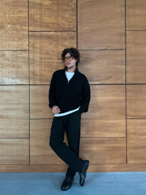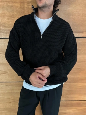 BASİC YARIM FERMUAR TRİKO SİYAH