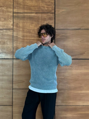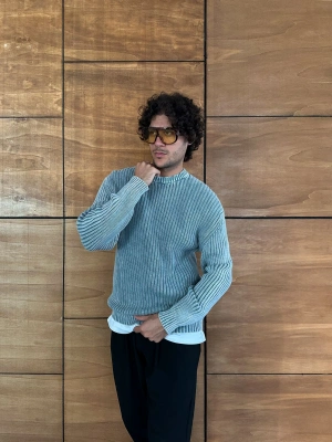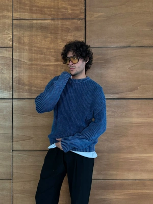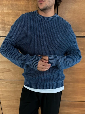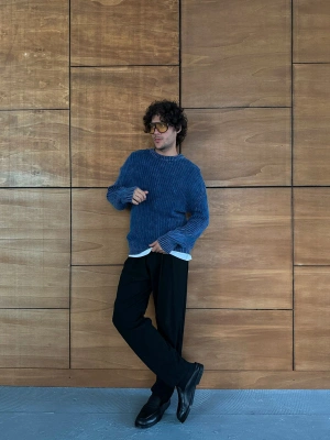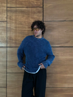 OVERSİZE KALIP TRİKO KAZAK MAVİ