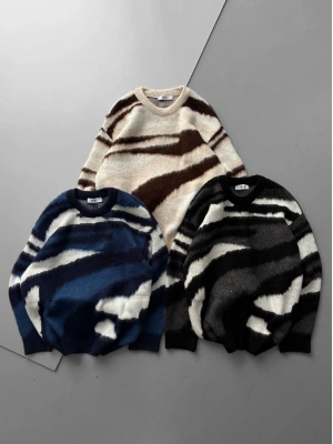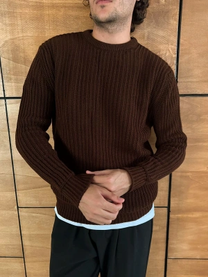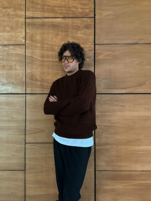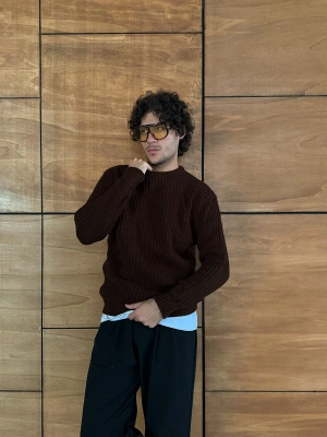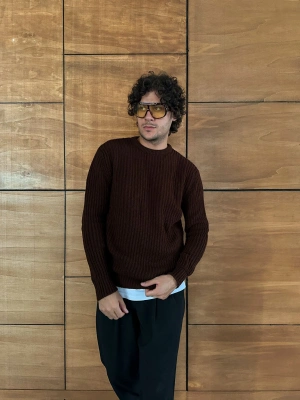 ZİNCİR FİTİLLİ BİSİKLET YAKA KAZAK KAHVE
