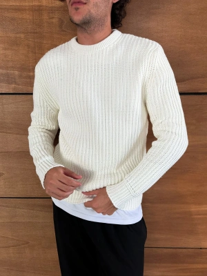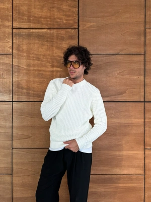 ZİNCİR FİTİLLİ BİSİKLET YAKA KAZAK BEYAZ