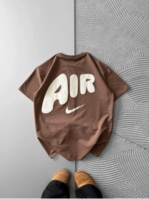 BİSİKLET YAKA KABARTMA AİR OVERSİZE TSHİRT KAHVE