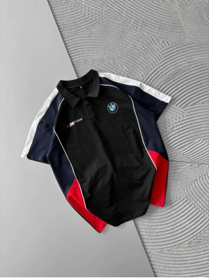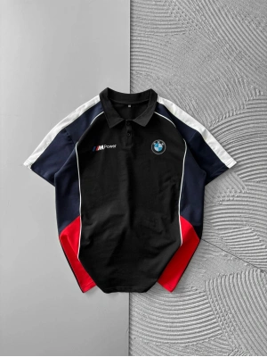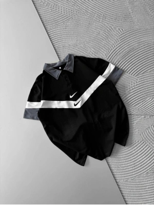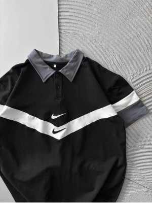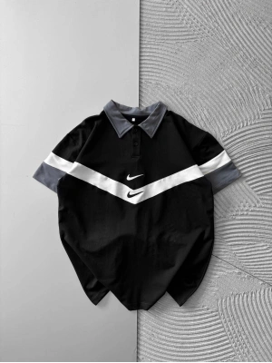 POLO YAKA İKİ TARAFLI NAKIŞ OVERSİZE TSHİRT SİYAH