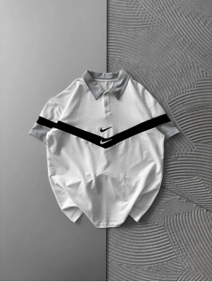 ÇİFT YAKA FERMUARLI NK NAKIŞ TSHİRT BEYAZ