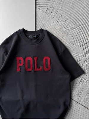 BİSİKLET YAKA PLO NAKIŞ DETAY DÜZ OVERSİZE TSHİRT ANTRASİT