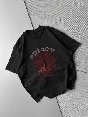 BİSİKLET YAKA TAŞLI ÖRÜMCEK SPİDER OVERSİZE TSHİRT SİYAH