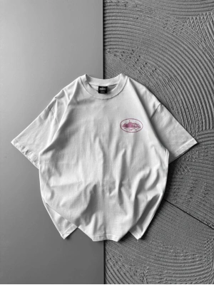 BİSİKLET YAKA CORTEZ BASKI OVERSİZE TSHİRT BEYAZ