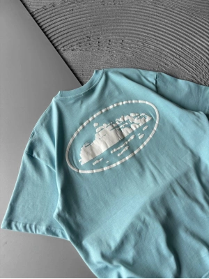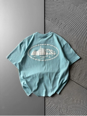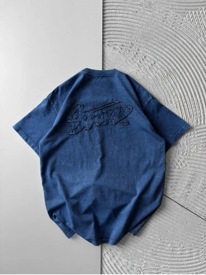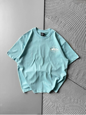 BİSİKLET YAKA CORTEZ BASKI OVERSİZE TSHİRT MAVİ